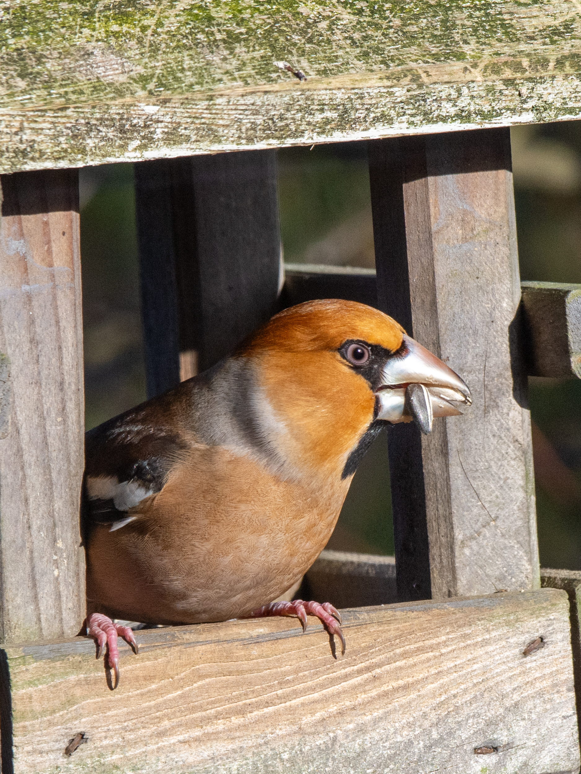 Naturgemäß sind Gartenvögel klein, scheu und bei belaubten Sträuchern und Bäumen kaum sichtbar. Man nimmt sie lediglich an ihrem Gezwitscher wahr. Deshalb eigenen sich für die Vogelfotografie besonders die Jahreszeiten später Herbst oder der Winter. In diesen Jahreszeiten ist das Blattwerk der Gehölze abgefallen, die Sträucher und Bäume sind lichtdurchdrungen und Vögel gut sichtbar. Besonders einfach ist es, aus dem heimischen Fenster zu fotografieren, denn die Fensterscheiben stellen für Vögel einen gewissen Schutz vor uns Menschen dar. So jedenfalls meine Beobachtungen, wenn ich Vögel an den von mir aufgestellten Futterplätzen aus dem Küchenfenster vor dem Fensterbrett beobachte wie auf diesem Foto: