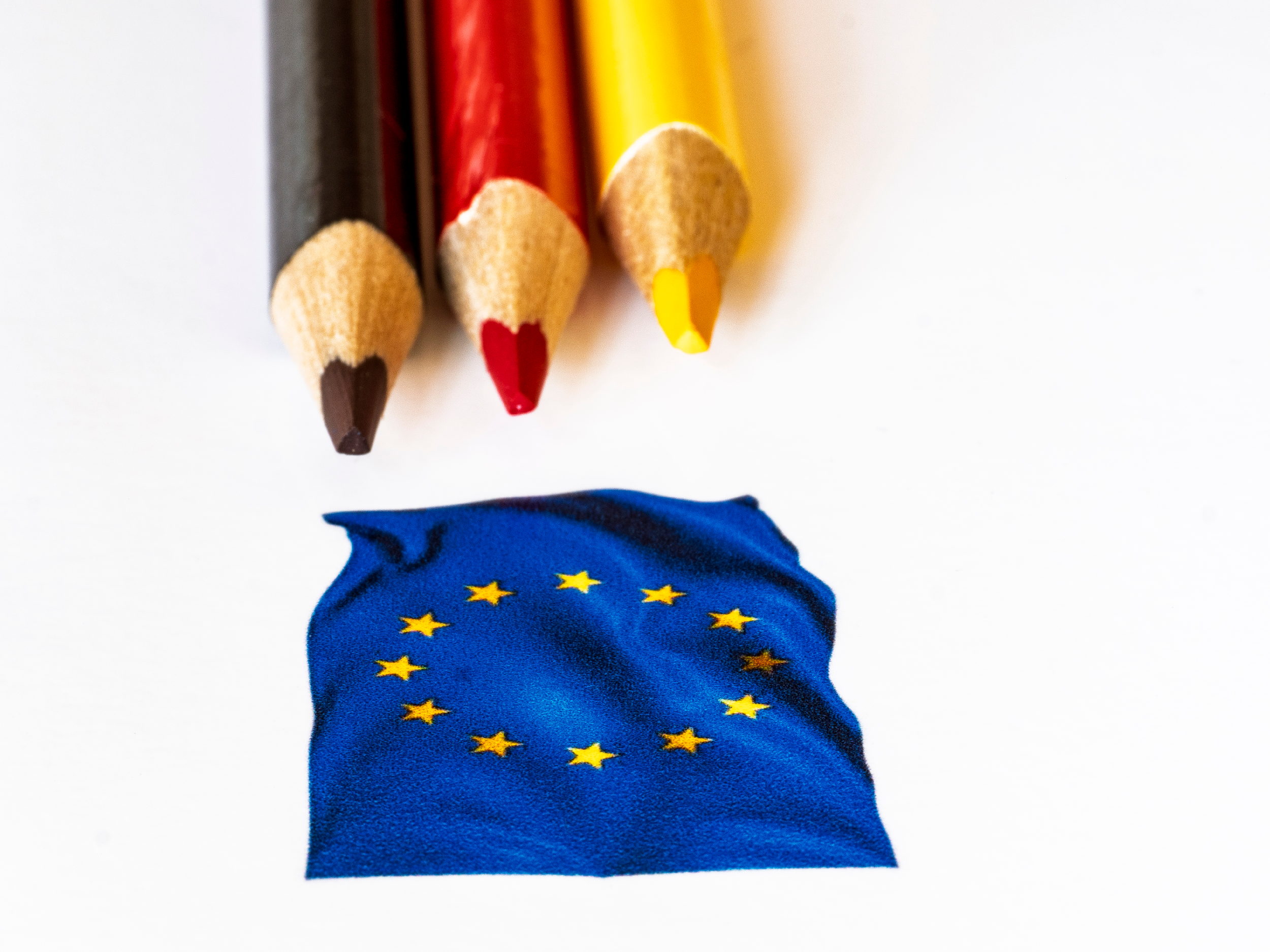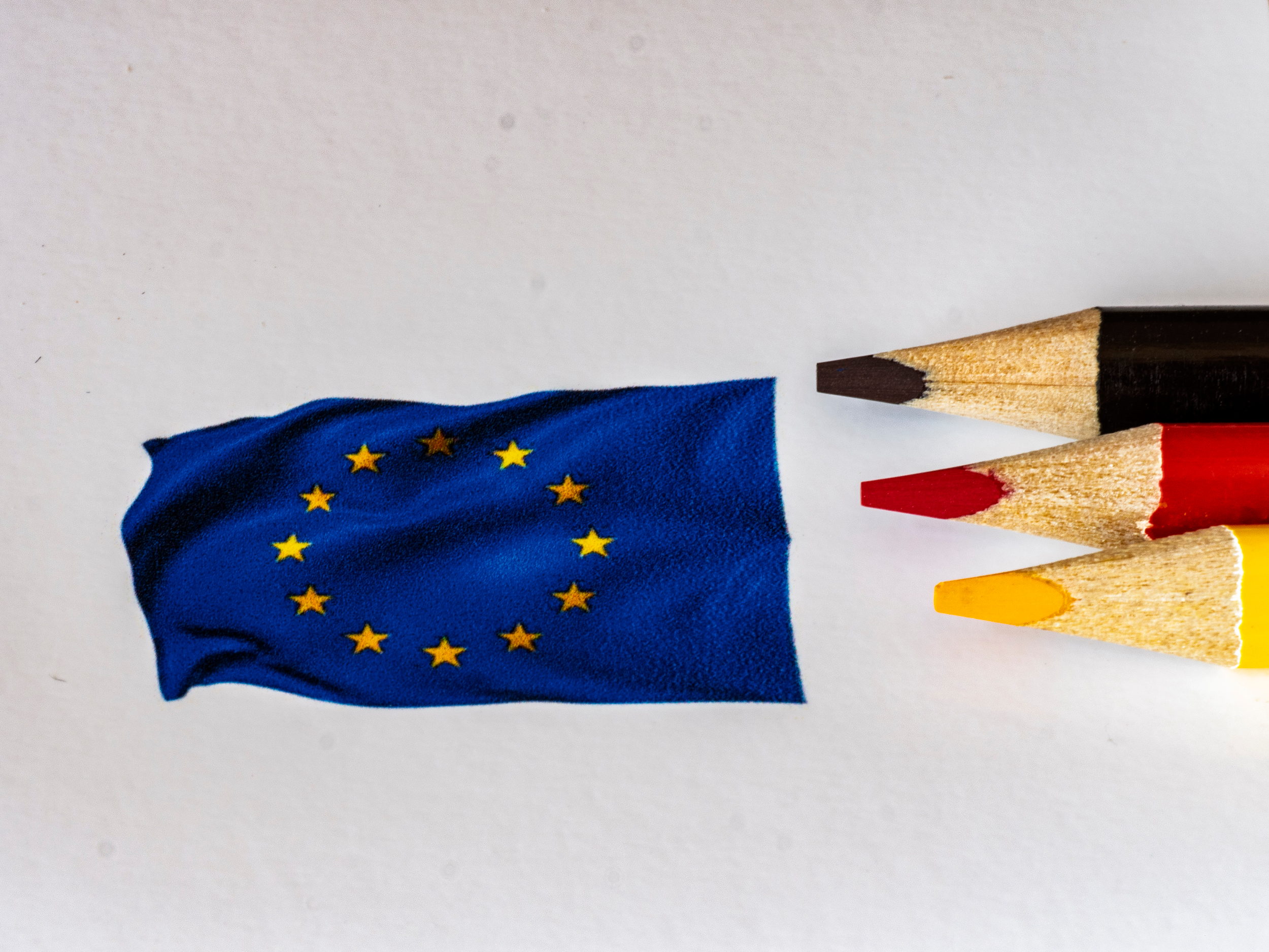 Schwarz_ Rot_ Gold und die europäische Flagge stehen hier nicht für Gegensätze, sondern für einen Dialog über Identität, Vielfalt und Zusammenarbeit „ Buntstifte“ : Schwarz Rot Gold und Europa, zwischen nationaler Identität und europäischer Vision